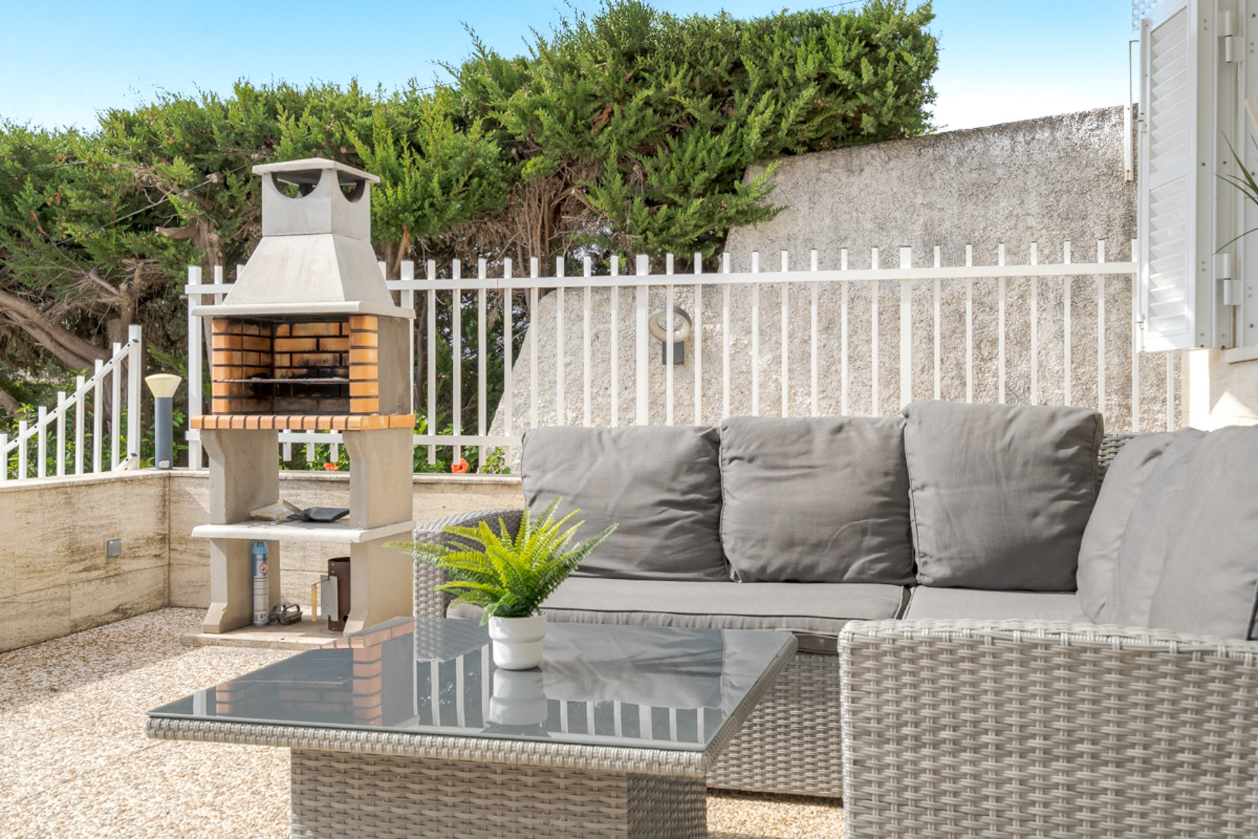 Fuera, una hermosa terraza te invita a disfrutar de comidas al aire libre, mientras que la barbacoa y la piscina privada te permitirán relajarte al máximo en un entorno tranquilo y soleado.