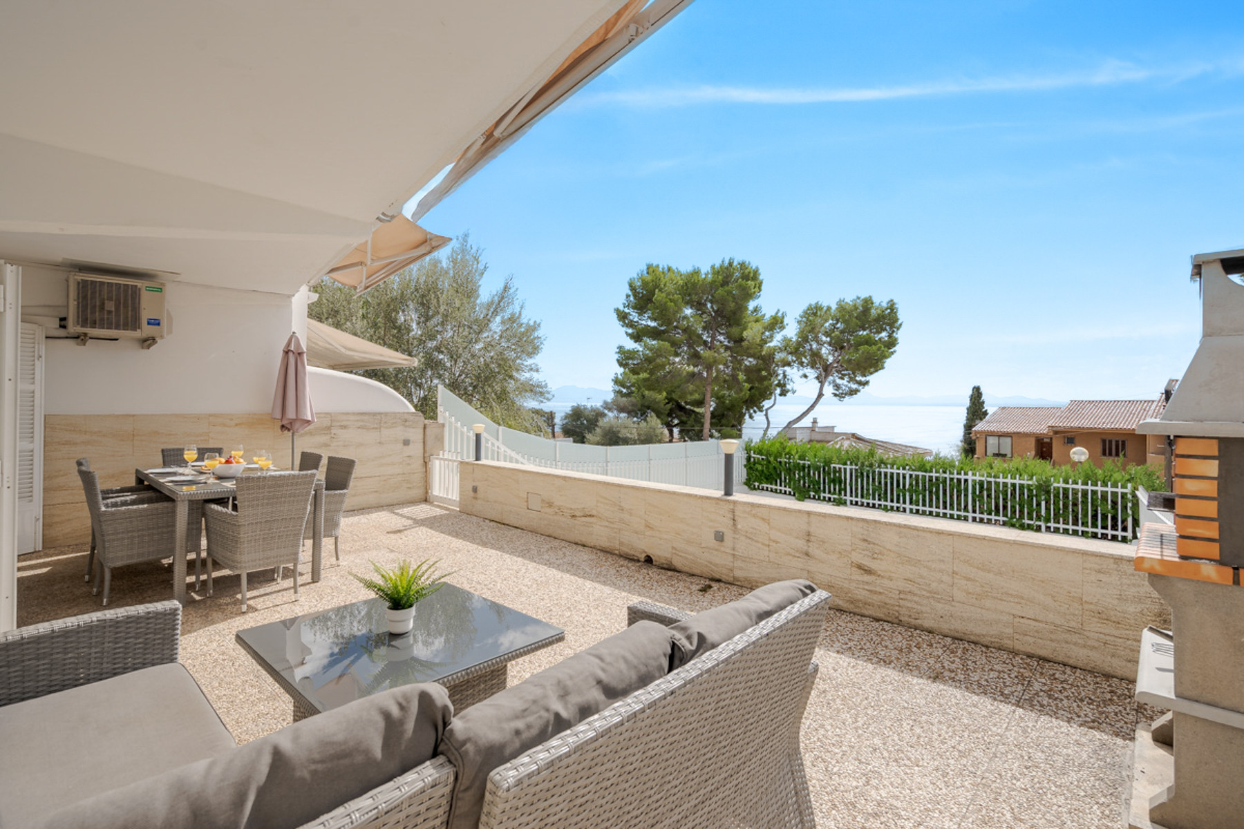 Gelegen in der charmanten Zone von Alcudia, ist dieses gemütliche Reihenhaus der perfekte Zufluchtsort für unvergessliche Ferien. Nur wenige Meter vom Strand entfernt, werden Sie die Meeresbrise und atemberaubende Meerblicke von Ihrer eigenen Terrasse aus genießen.