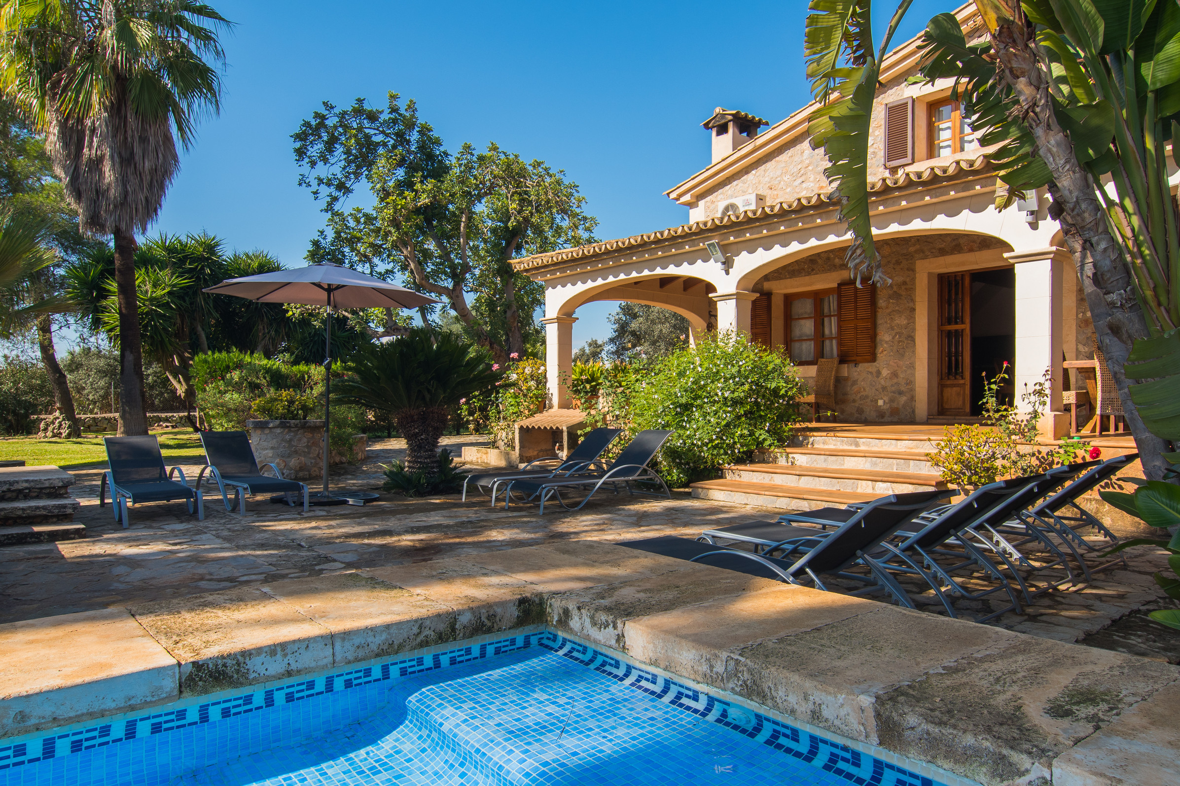 Tiraset is a charming 3-bedroom, 2-bathroom property with capacity for 6 people, strategically located in the heart of Mallorca. It is situated next to the picturesque village of Llubí, offering an unbeatable location to explore the island, as in just 30 or 45 minutes you can reach iconic spots like Muro Beach or the city of Palma. The villa is fully equipped to enjoy both in summer and low season, with air conditioning and high-speed wifi perfectly suitable for video calls. Its outdoor area is a true private oasis that includes a swimming pool, barbecue, and fully furnished areas for outdoor dining, sunbathing, or relaxing in the shade. It is the ideal refuge for families and friends, especially for cycling enthusiasts looking to take advantage of the routes in the centre of the island throughout the year. Additionally, for your total comfort, the accommodation has private parking with capacity for 2 cars and, of course, we accept your pet so that the family is complete during the holidays.